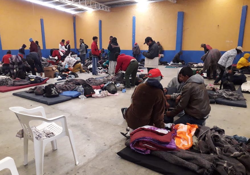 Antes de reanudar su viaje, los migrantes realizaron una asamblea para tomar en consideración los riesgos que les genera el descenso de temperaturas, debido a que no pueden cargar con las cobijas o prendas abrigadoras que les son regaladas en algunas comunidades o ciudades mexicanas.