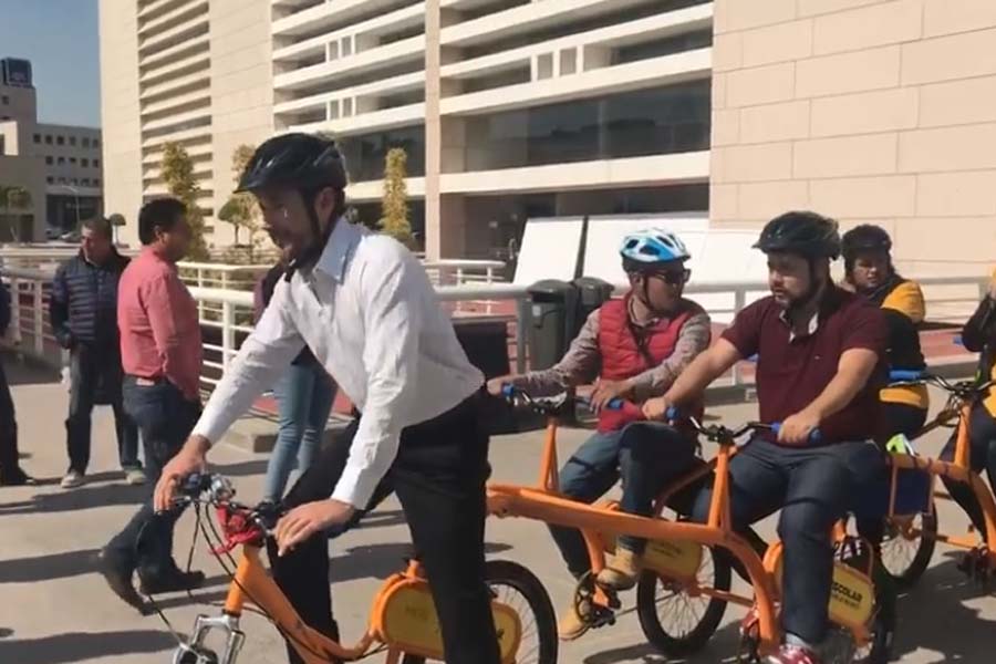 Como parte del programa ” A la Escuela en Bici” que se aplica en el municipio de Querétaro, este viernes fue presentada la “Bici oruga”.