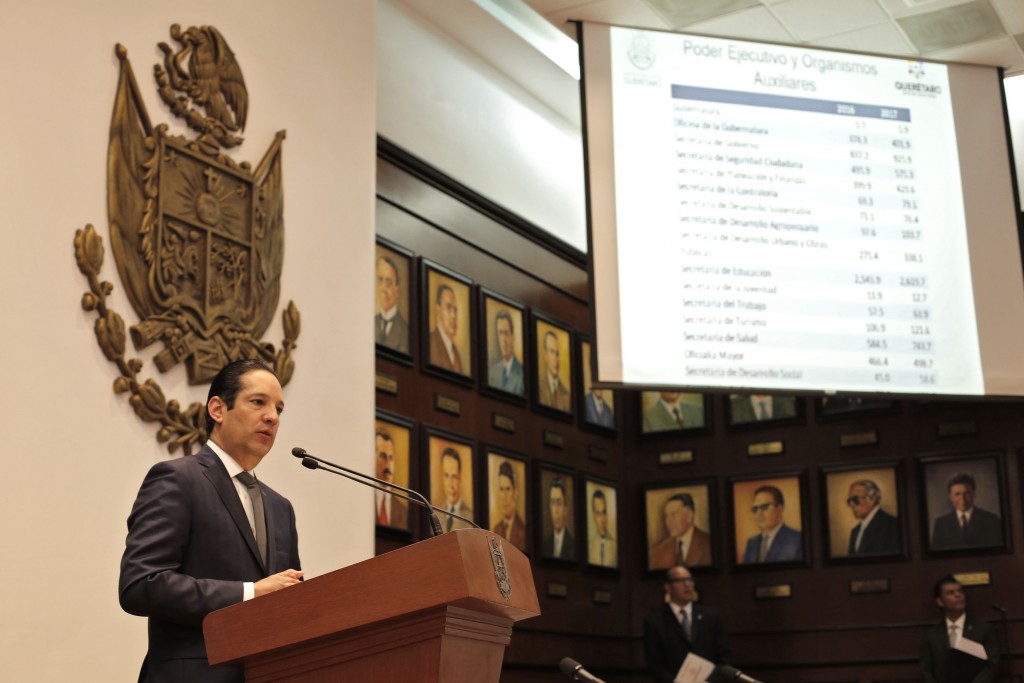 “Por primera vez, en la historia de Querétaro, para seguir abonando a la transparencia que hemos manifestado todos los días, de inmediato cuando se presentó el paquete de presupuesto se ha hecho público en el portal de Gobierno del Estado, a todas y todos los queretanos (…) con eficiencia continuamos con el propóstio de hacer más con menos; brindamos sustentabilidad a las finanzas públicas y ese es el mandato que hemos recibido de la ciudadanía”, expresó el gobernador.