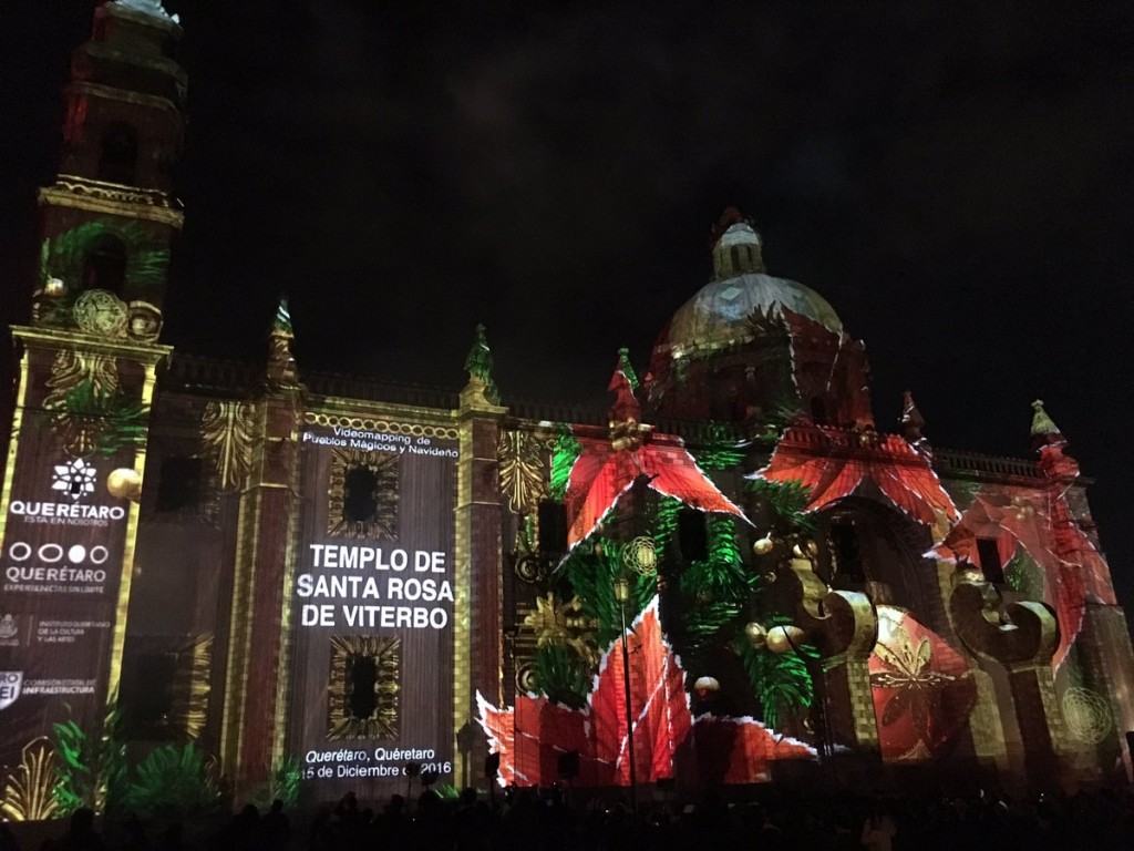 ¡Espectacular! No te pierdas las proyecciones navideñas en el templo de Santa Rosa de Viterbo. #VenaQuerétaro #FelizNavidad pic.twitter.com/OxY3OJO7Ig
