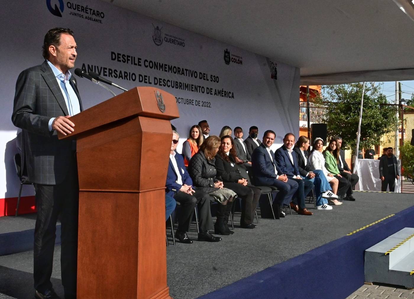 Kuri González, al presidir en el municipio de Colón el desfile conmemorativo del 530 aniversario del descubrimiento de América, afirmó que se trata de una fecha que da pie para celebrar la identidad y cultura, pues es la herencia de dos mundos que cambiaron después de encontrarse hace más de cinco siglos.