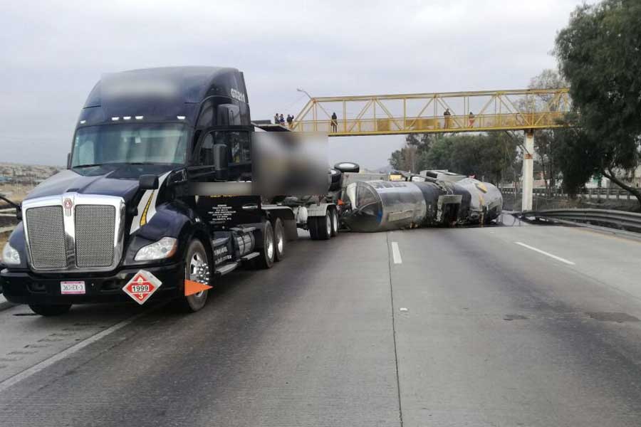 Una pipa cargada de chapopote volcó a la altura del kilómetro 60 provocando el cierre de la autopista y largas filas de autos que se vieron frenada su marcha hacia la Ciudad de México.