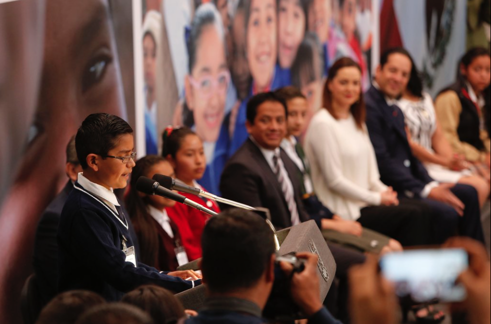 “Deben de considerar que los niños y las niñas no somos simples espectadores, sino que somos seres pensantes con sentimientos y que compartimos un gran sueño, vivir en una sociedad donde reine la paz y el bienestar”, manifestó.