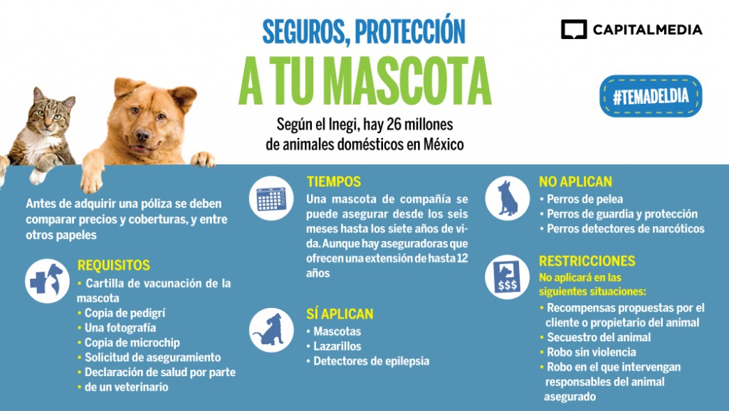 Y a pesar de ser un seguro de reciente creación, con menos de dos años de existencia en el mercado, compañías como Mapfre, Seguros S, y Medi Pet, entre otras, ya ofrecen la protección para perros y gatos, (únicamente, ya que aún no hay seguros para otro tipo de animales) con costos accesibles que van desde 200 hasta mil 500 pesos anuales, dependiendo del lugar, tipo de animal y aseguradora.