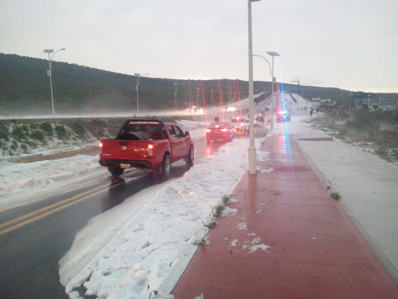 Indicó que el registró es de lluvia moderada a intensa con caída de granizo en el Libramiento Sur poniente, Sonterra, Huertas la Joya, Puerta Verona y Tlacote. En Rancho San Pedro, Jardines del Sol, con encharcamientos sólo a nivel de banqueta.