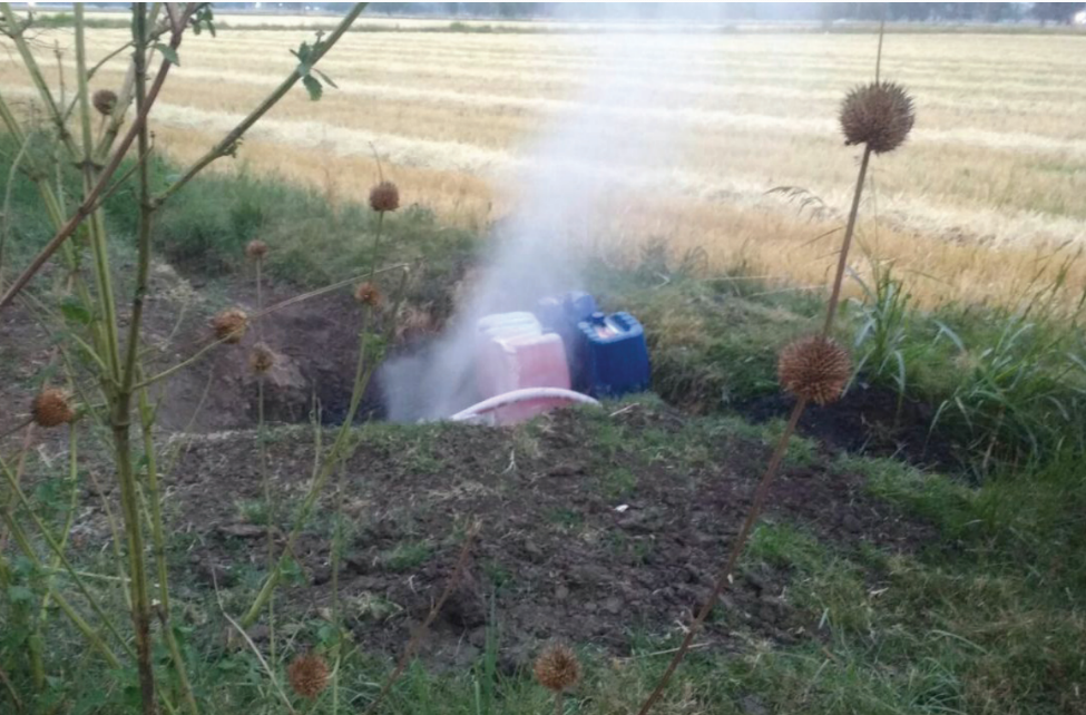 La apertura de una toma clandestina en el ejido Senegal de Palomas provocó una fuga de combustible que tardó cerca de cuatro horas en ser controlada debidamente por el personal de Seguridad Física de Petróleos Mexicanos (Pemex).