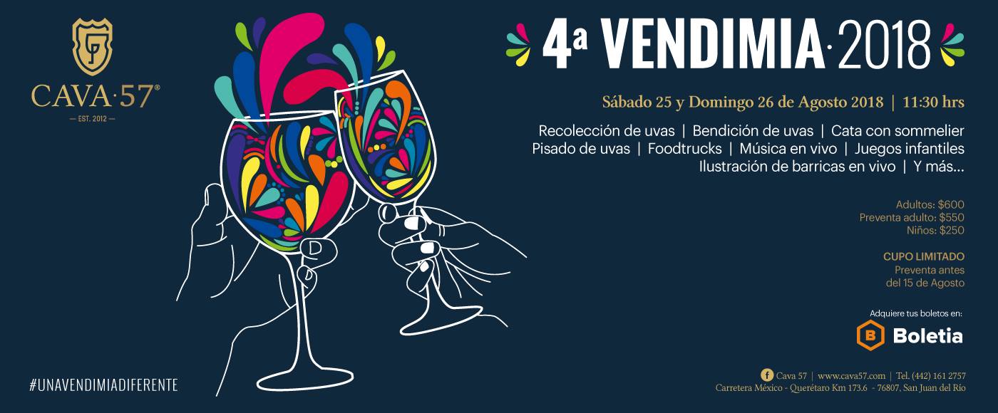Recolección y pisado de uvas, recorridos por el viñedo y música cubana en vivo son las actividades que se realizarán este fin de semana en la bodega queretana Cava 57 para celebrar su fiesta de la Vendimia.