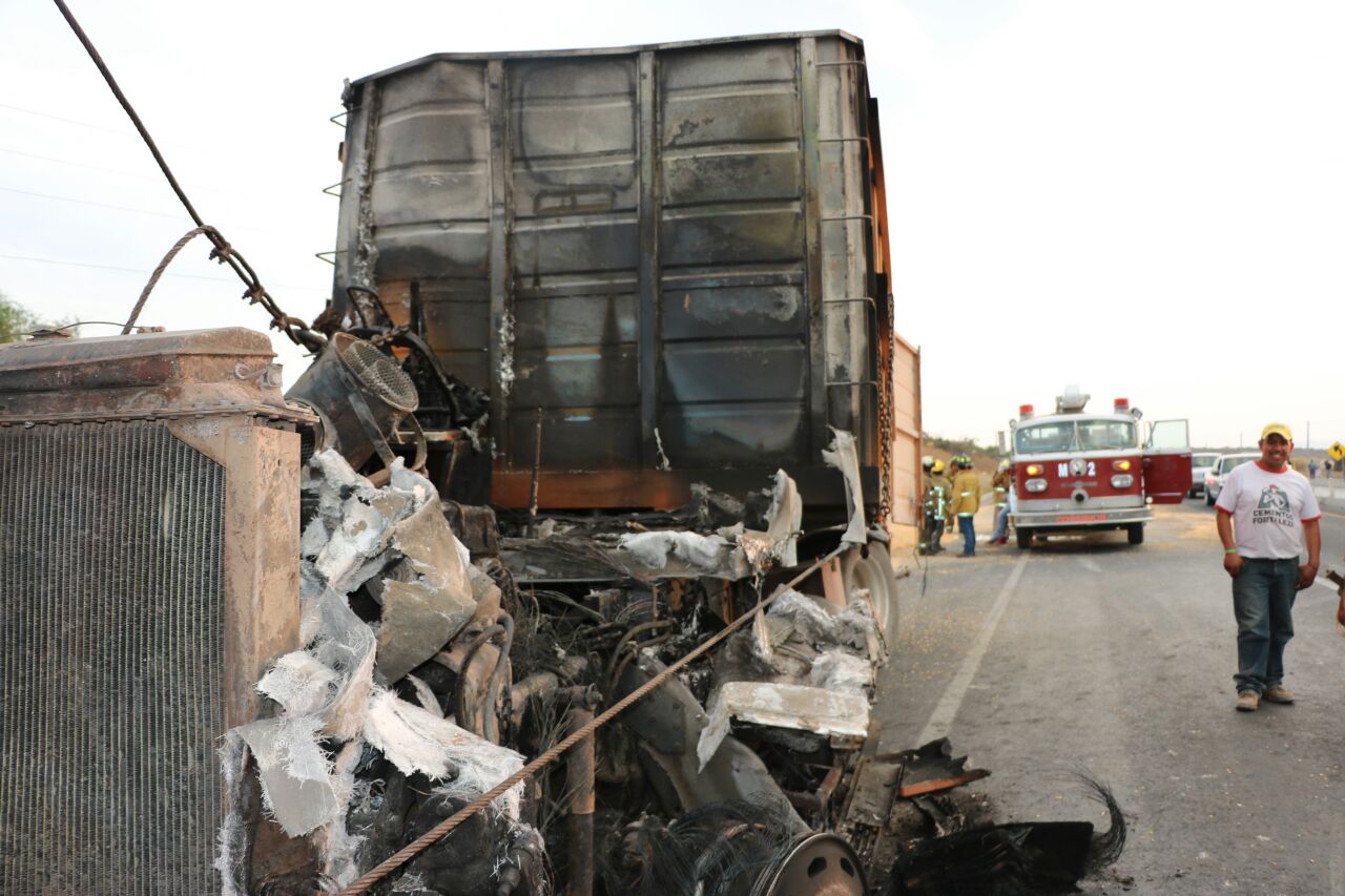 Volcó y se incendió un trailer al quedarse sin frenos en la carretera a Bernal, arrojando un lesionado a altura de la comunidad de Tierra Blanca.