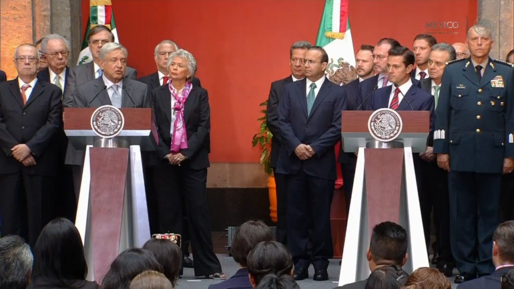 El presidente electo, Andrés Manuel López Obrador, en compañía de parte de su gabinete, se reunió en Palacio Nacional con el mandatario Enrique Peña Nieto y sus colaboradores para dar inicio formalmente al proceso de transición.