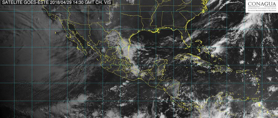 El pronóstico para la Península de Yucatán indica cielo nublado por la tarde, tormentas puntuales fuertes en Campeche intervalos de chubascos en Quintana Roo y lluvias aisladas en Yucatán, las cuales estarán acompañadas de actividad eléctrica.