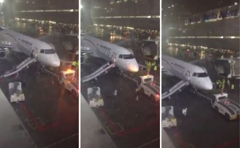 Grabaciones muestran a los pasajeros saliendo del avión por medio de toboganes ubicados a los costados. El incidente ocurrió en la Terminal 2 del AICM, plataforma T1.