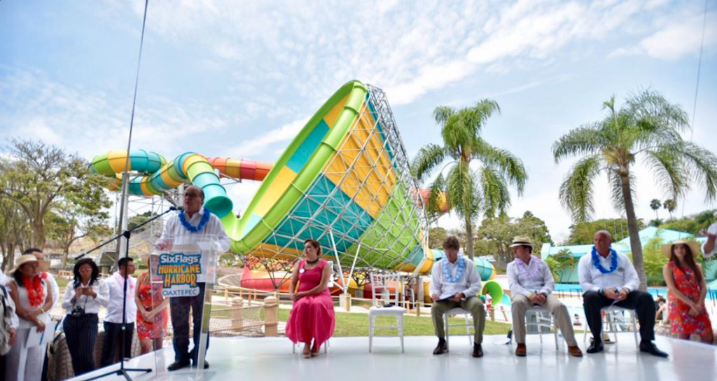 Autoridades estatales y federales inauguraron hoy el parque acuático Six Flags Hurricane Harbor Oaxtepec, único de América Latina del consorcio Six Flags Internacional y en el que se invirtieron alrededor de 330 millones de pesos.