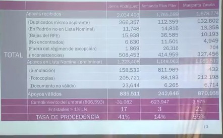 El Instituto Nacional Electoral (INE) refirió que sólo Margarita Zavalalogró el número de firmas necesarias para ser candidata independiente a la presidencia de la república.