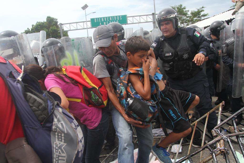 Migrantes hondureños rompieron el cerco fronterizo entre México y Guatemala y lograron llegar hasta las oficinas del Instituto Nacional de Migración.