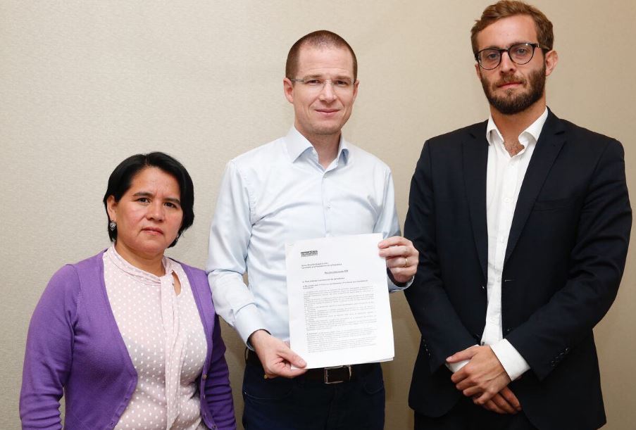 El candidato presidencial de la coalición Por México al Frente, Ricardo Anaya, se reunió con Emmanuel Colombié, director para América Latina de la organización Reporteros Sin Fronteras, y con Balbina Flores, representante en México, quienes le entregaron una lista de recomendaciones para reforzar la protección de los periodistas y para acabar con la impunidad de los crímenes cometidos en contra de ellos.