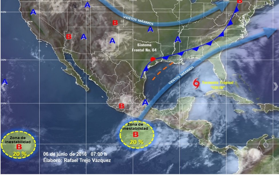 El Centro Nacional de Huracanes (CNH) informó que Colin tiene vientos máximossostenidos de 85 kilómetros por hora y se espera que se fortalezca aún más.