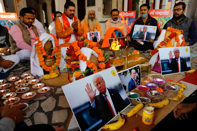 Cientos de millas al norte de Delhi, casi dos docenas de miembros de un grupo conocido como Hindu Sena (“Ejército Hindú”) se sumaron a un sacerdote vestido con túnicas azafrán para llevar a cabo rituales de fuego y cantar versos por la victoria de Trump.