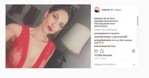La actriz se dejó ver en un sensual y atrevido vestido rojo transparente, la imagen, hasta el momento, tiene más de 170 mil likes.