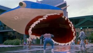 10.- El Cine 3D. En “Regreso al Futuro 2”, vemos a McFly sorprendido tras ver imágenes de la película “Tiburón” en Holomax, una especie de hologramas muy reales. Actualmente ls proyecciones en 3D son algo habitual e incluso ya pueden ser vistas en el llamado formato 4D.
