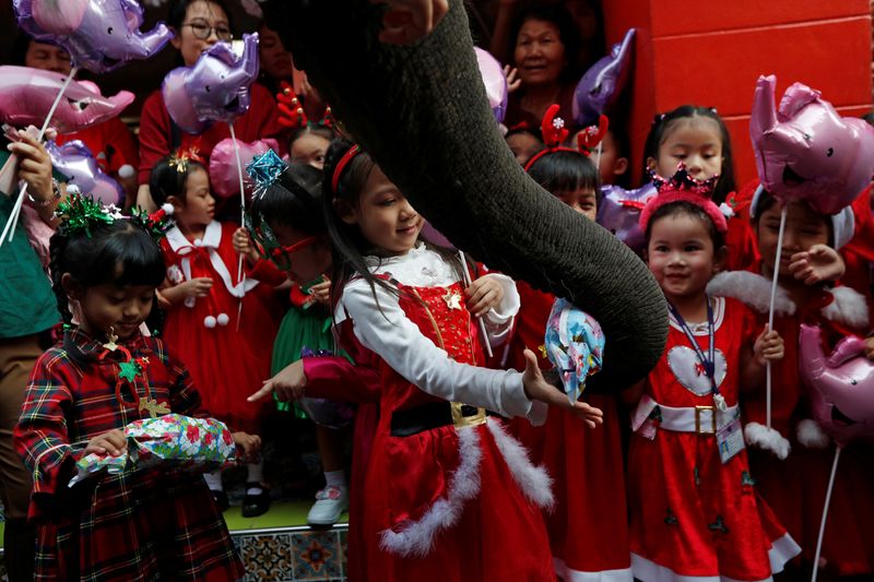 AYUTTHAYA, Tailandia, 23 dic (Reuters) – Elefantes vestidos como Papá Noel repartieron regalos y dulces a estudiantes en Tailandia, en una tradición anual de Navidad en el país de mayoría budista.