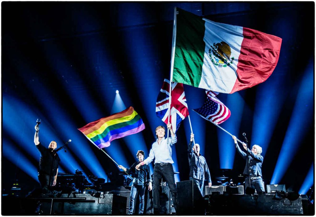 “Live and let die” dio paso a la explosión de fuegos artificiales en tanto que “Hey jude” convirtió al imponente recinto en un coro de más de 48 mil almas entonando el clásico “Na, na, na” a la par que él ondeaba las banderas de México, Estado Unidos, Gran Bretaña y la comunidad gay.