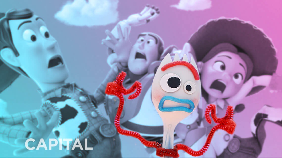 En la tercera entrega los famosos juguetes pasaron a manos de la pequeña Bonnie Anderson, quien creó a Forky a partir de un tenedor de plástico con ojos movibles y brazos de limpiapipas, que enfrenta una crisis.