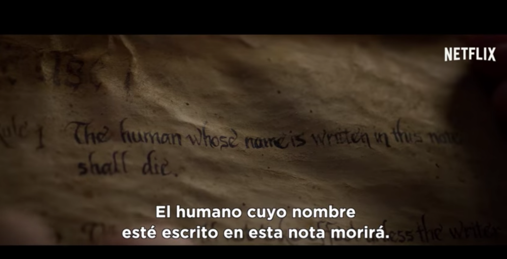 En un minuto este adelanto muestra cómo el cuaderno de la muerte cae del cielo a manos de “Light Turner” (Nat Wolff), un adolescente que hará uso de la libreta para asesinar a algunas cuantas personas.