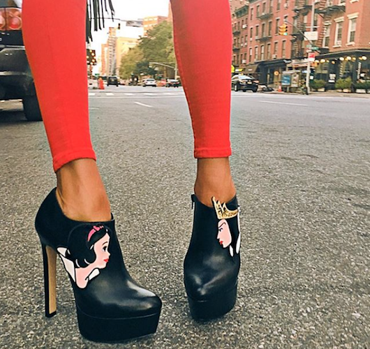 Davis se inspiro en una de las princesas más famosas de Disney para crear una línea de calzado que va desde sandalias con pedrería , botines con tacones fuera de lo común y tenis con plataforma que hacen que nos traslademos hasta la historia de aquella princesa.
