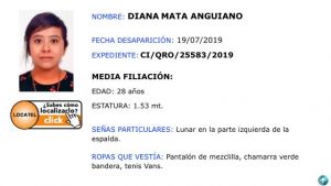 Diana Mata Anguiano, de 28 años de edad, reportada como desaparecida el 19 de julio pasado en Santa Rosa Jáuregui fue localizada sin vida, de acuerdo a familiares.