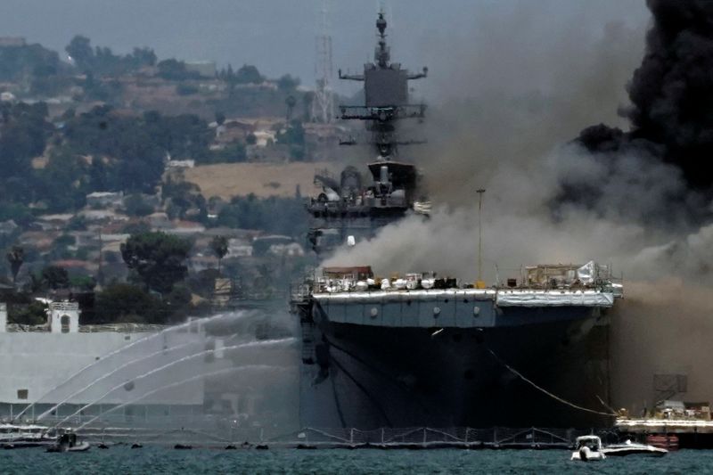 El Departamento de Bomberos de San Diego reportó una explosión junto con el incendio, que se produjo a las 8:30 am hora local (1530 GMT) a bordo del USS Bonhomme Richard, un buque de asalto anfibio.