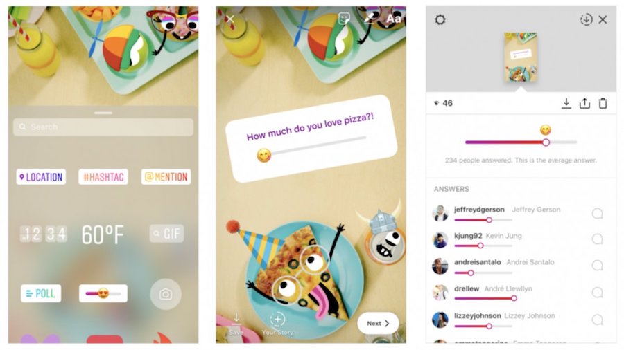 Cuando los internautas vean un control deslizante de emoji en una historia, deben arrastrar el emoji hacia la izquierda o hacia la derecha y obsérvalo animar mientras se piensa en la respuesta; después solo hay que soltar los emoji para contestar y se podrá observar el promedio actual de respuestas de otros.