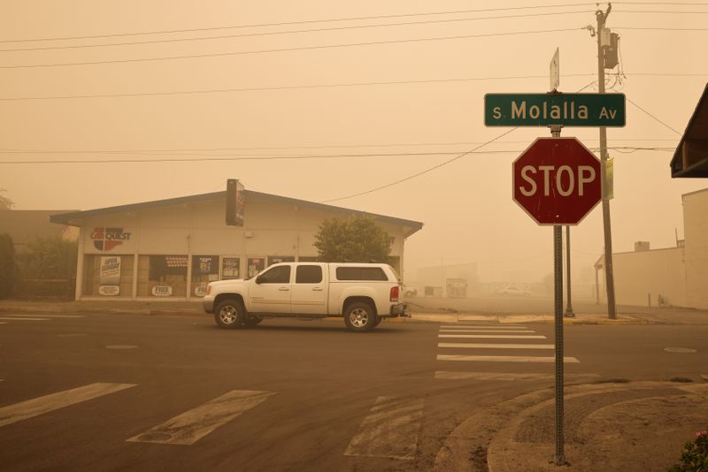 Molalla, una comunidad a unos 40 km al sur del centro de Portland, era un pueblo fantasma cubierto de cenizas después de que se le dijera a sus más de 9.000 residentes que evacuaran. Solamente 30 personas se negaron a irse, dijo el departamento de bomberos de la ciudad.