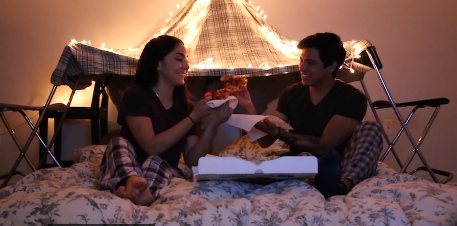 Junta tus dulces y botanas preferidas, haz una casa de sábanas, adórnala con luces o velas artificiales y prepárate para un maratón de drama, comedia y finales felices.