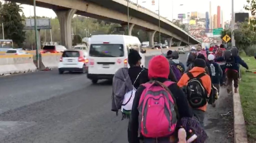 Cerca de 150 migrantes llegaron a la terminal de la Línea 2 del Sistema de Transporte Colectivo y comenzaron a caminar hacia Periférico Norte para tomar la lateral en dirección a la caseta de la carretera México-Querétaro.
