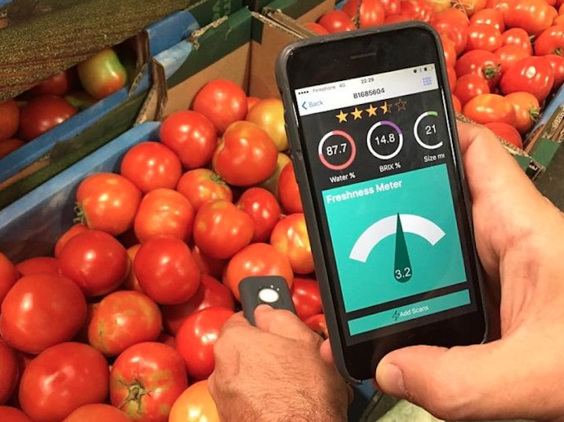 La aplicación y el sensor israelí revela datos de la pieza como el contenido de azúcar, acidez, firmeza, peso y color, además de su ubicación GPS y condiciones meteorológicas en el momento de la muestra.