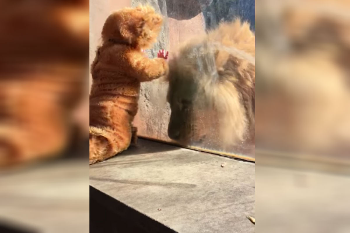 Un video, que ya se ha viralizado, muestra a un pequeño y tierno bebé disfrazado de león que se pasea frente a la jaula de uno de estos felinos, protegida por un cristal, en un zoológico.