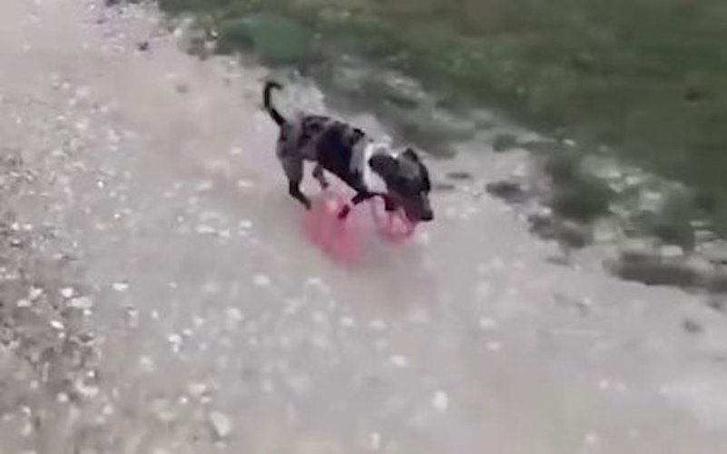Un video que circula en redes muestra a Burbujas, un perrito que posee sólo las patas traseras y que con la ayuda de una prótesis delantera, puede tener una vida normal como cualquier otro animalito de compañía.
