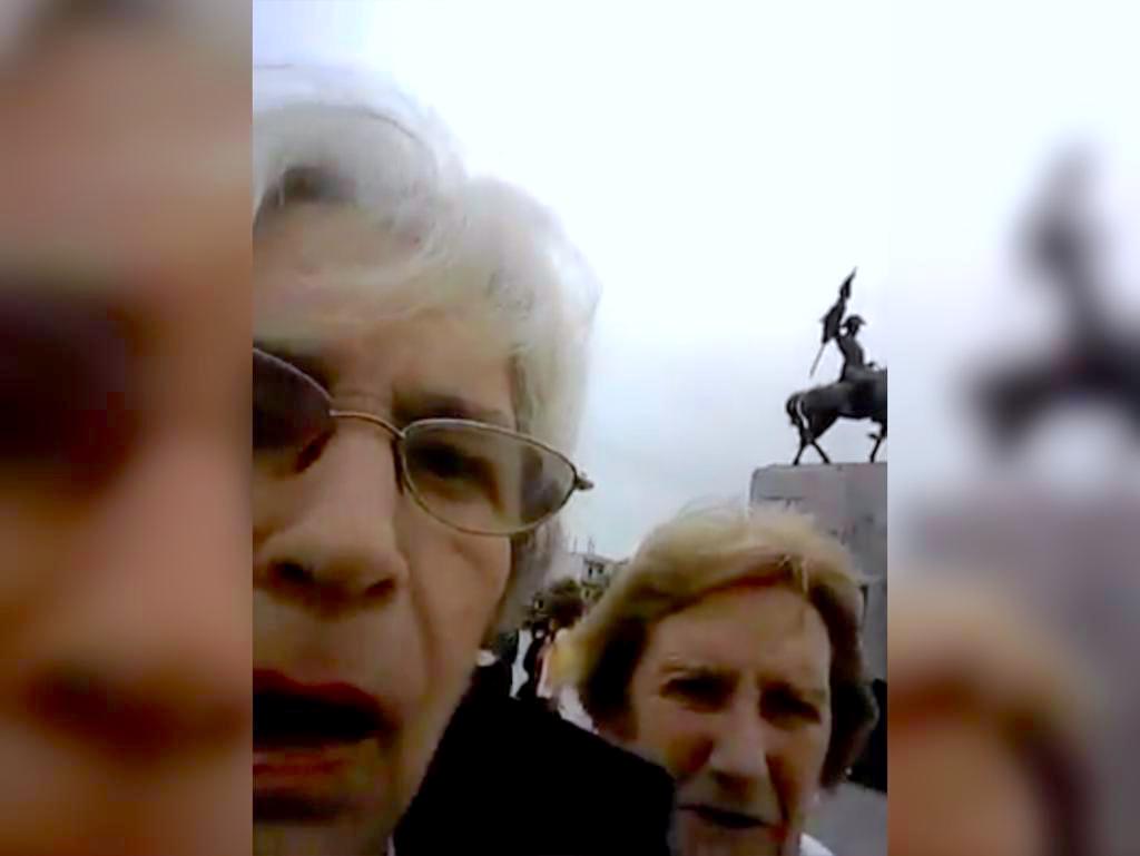 Las simpáticas abuelitas tuvieron que ser auxiliadas por una joven que pasaba cerca de ellas y las auxilió a poner la cámara correctamente y se alcanza a escuchar que la joven les dijo, “vos está grabando ahí”.